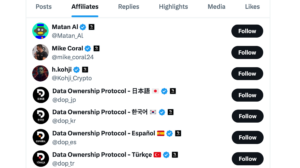 – Affiliates: We are affiliated with 4 communities, and 3 accounts of core team members, all verified with a blue badge (Blue Checkmark) and a black DOP logo: